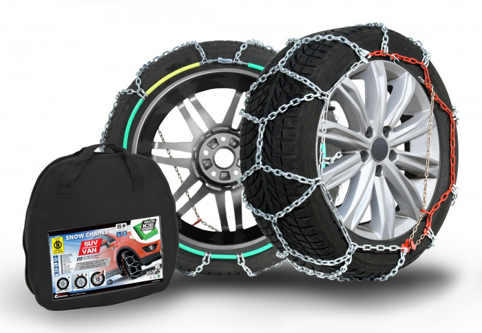 Snehové reťaze, pre SUV/VAN do hmotnosti 7500 kg, spĺňajúce európske normy vrátane v Rakúsku vyžadovanej "ÖNORM". Možno použiť aj pre dodávky a obytné vozidlá.