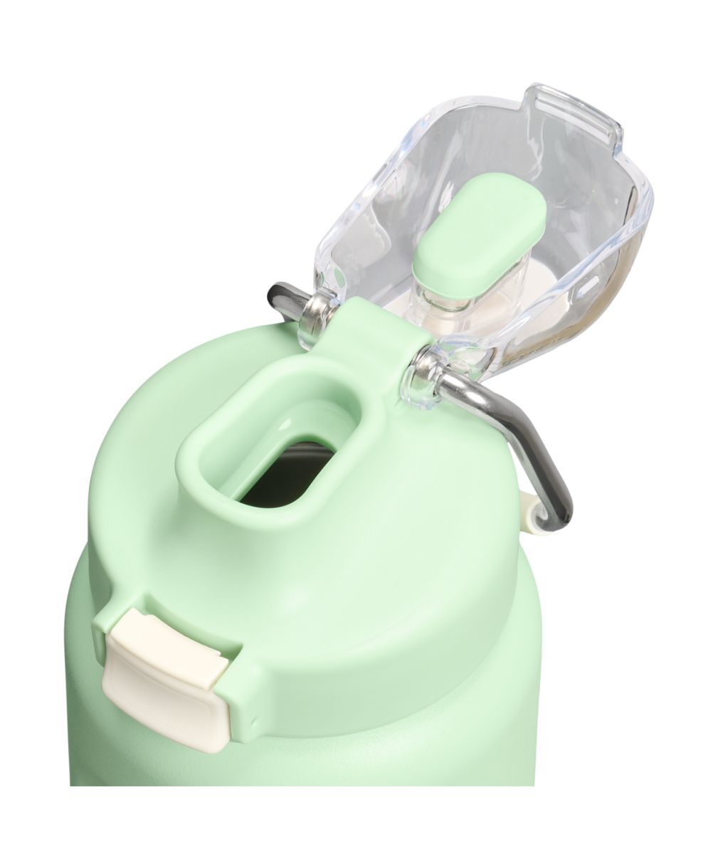 Široké hrdlo umožňuje ľahké čistenie aj pohodlné vkladanie ľadu alebo ovocia a náustok je navrhnutý tak, aby bolo možné piť komfortne aj za chôdze alebo pri športe. Viečko je uzamykateľné pomocou tlačidla, čo zaisťuje maximálnu ochranu proti vytečeniu. Navyše má pútko na ľahké prenášanie alebo uchytenie k batohu.