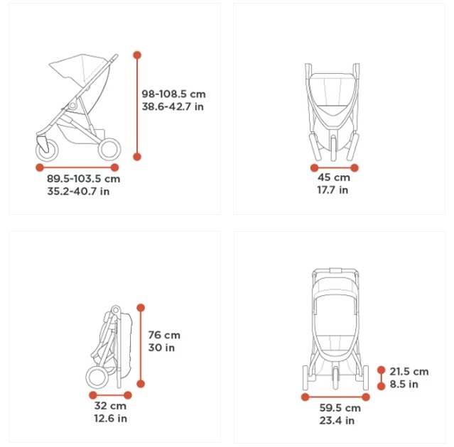 - Rozmery zloženého kočíka: 75 x 45 x 39
