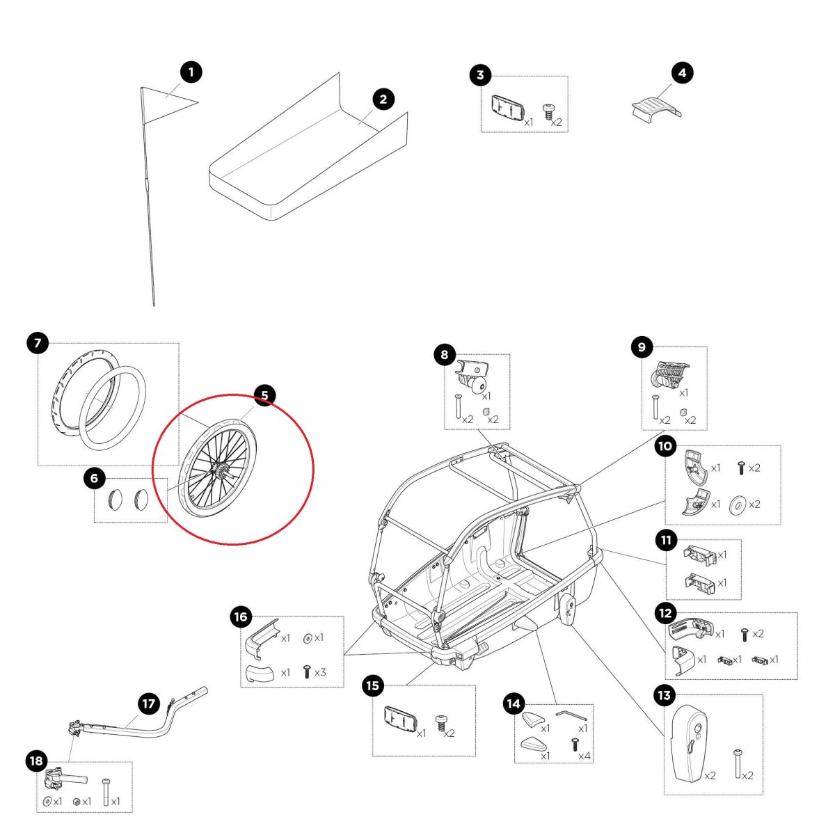 Rear wheel 20" 24 spokes 55439 - náhradný diel pre vozíky Thule Bexey.