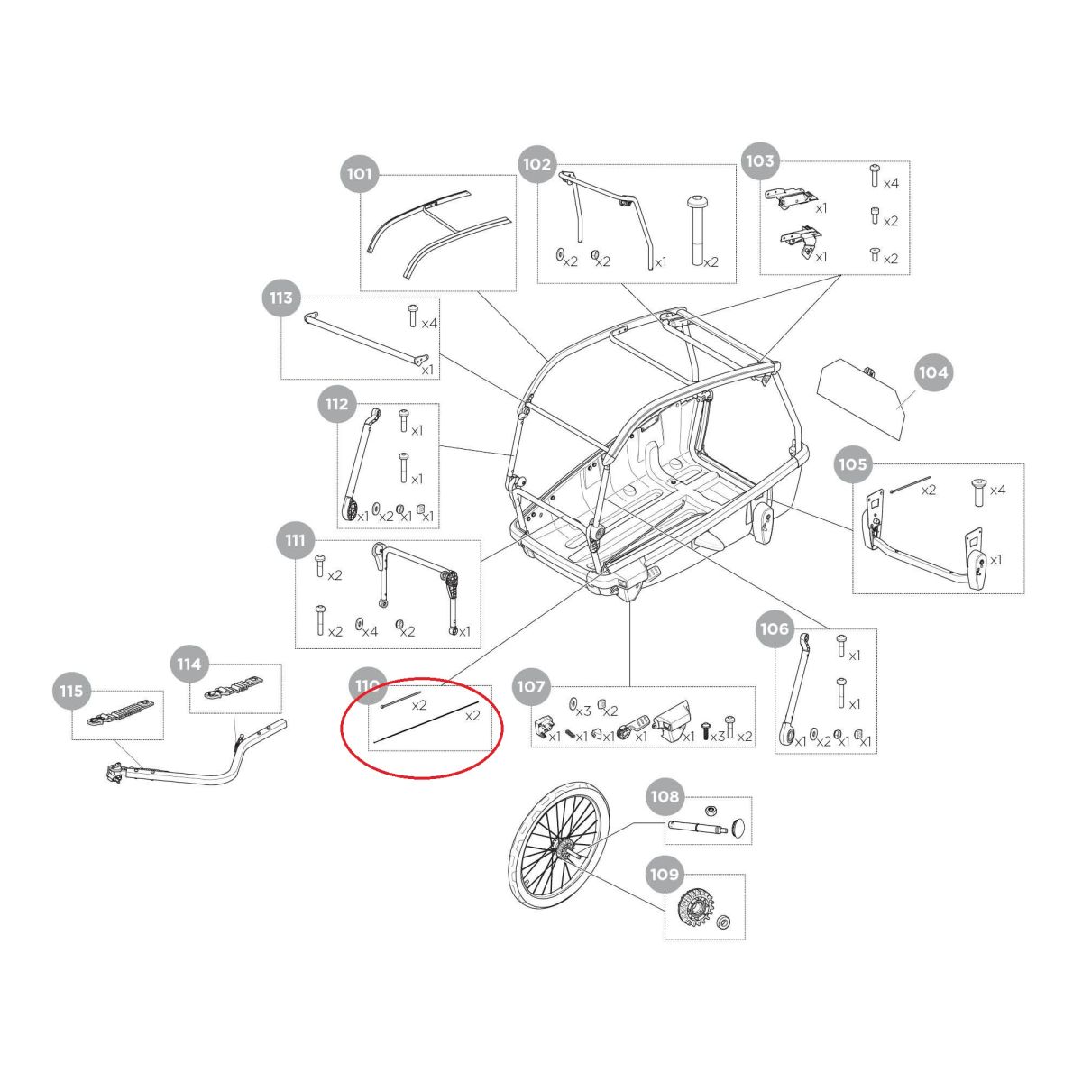 Wire parking brake large 55457, náhradný diel pre vozíky Thule Bexey.