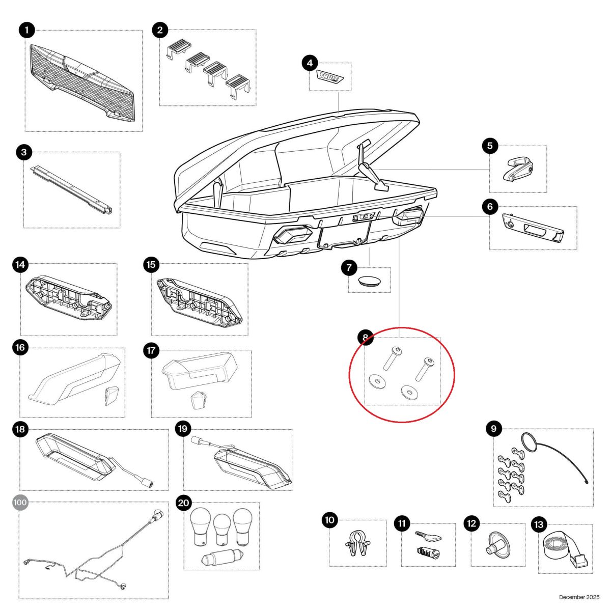 Náhradná skrutka a podložka 1500055846 pre boxy Thule Arcos.
