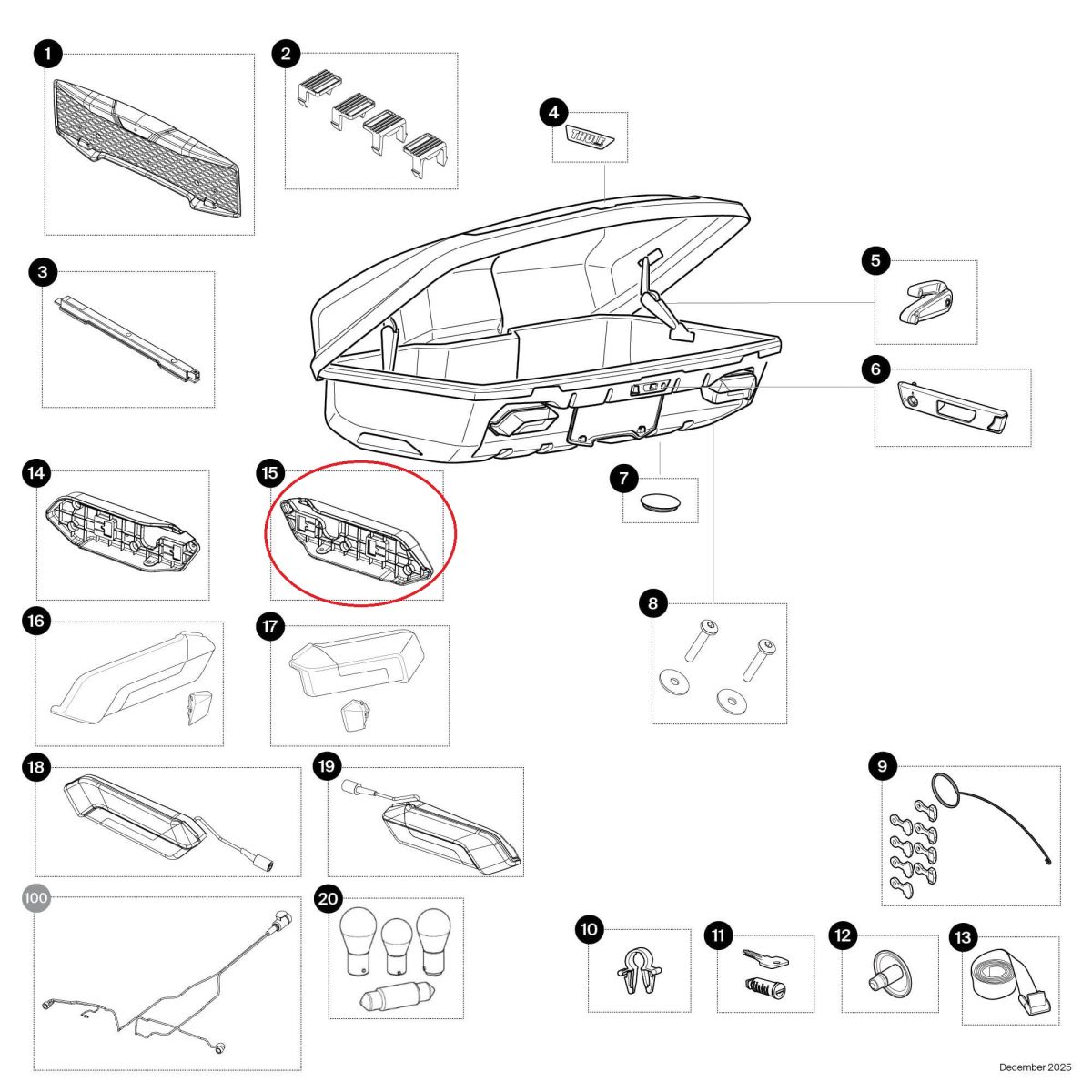 Náhradný rám lampy pravý Thule 1500057120 pre boxy Thule Arcos.