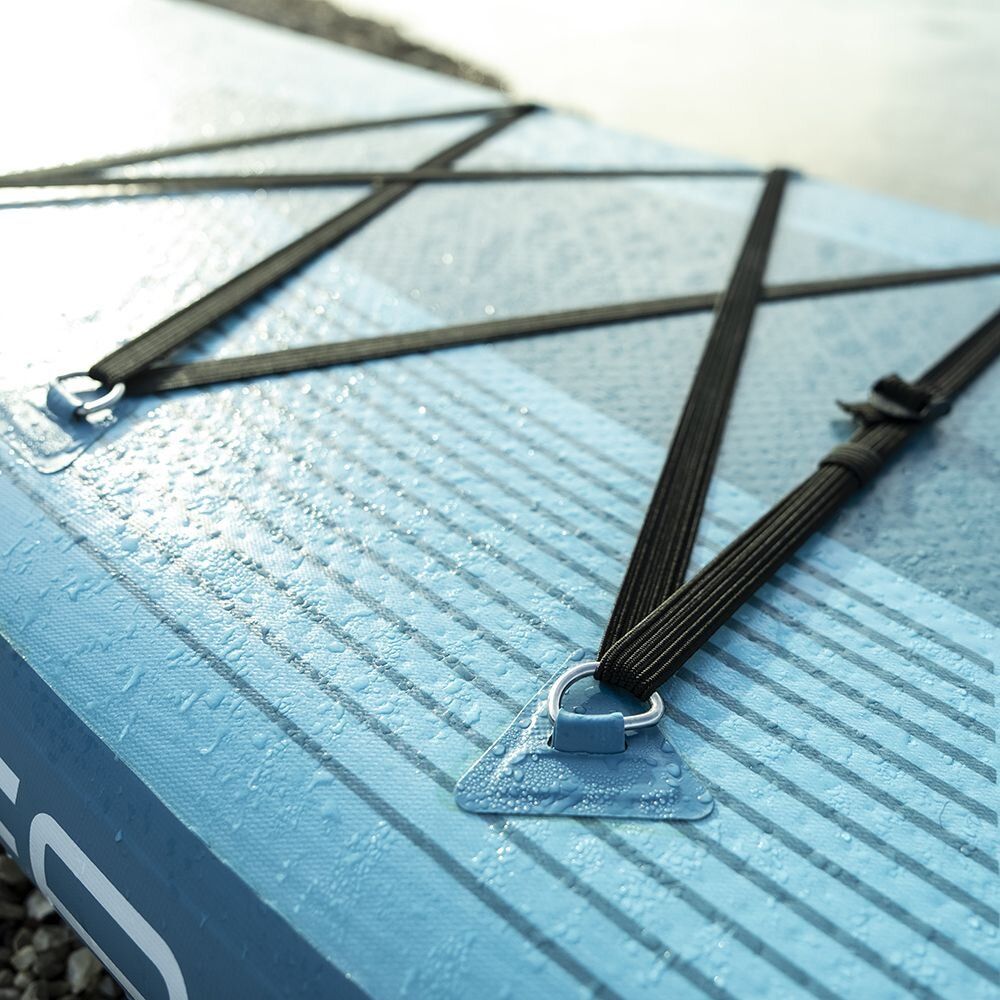 Paddleboard je vybavený protišmykovou EVA podložkou pre bezpečný a pohodlný postoj, odnímateľnou Slide-In plutvou pre lepšie smerové vedenie, elastickými popruhmi na upevnenie osobných vecí a centrálnym madlom, ktoré umožňuje ľahké prenášanie. Integrované D-ringy umožňujú pripevnenie kajakovej sedačky a premenu paddleboardu na kajak, čo výrazne rozširuje možnosti využitia.