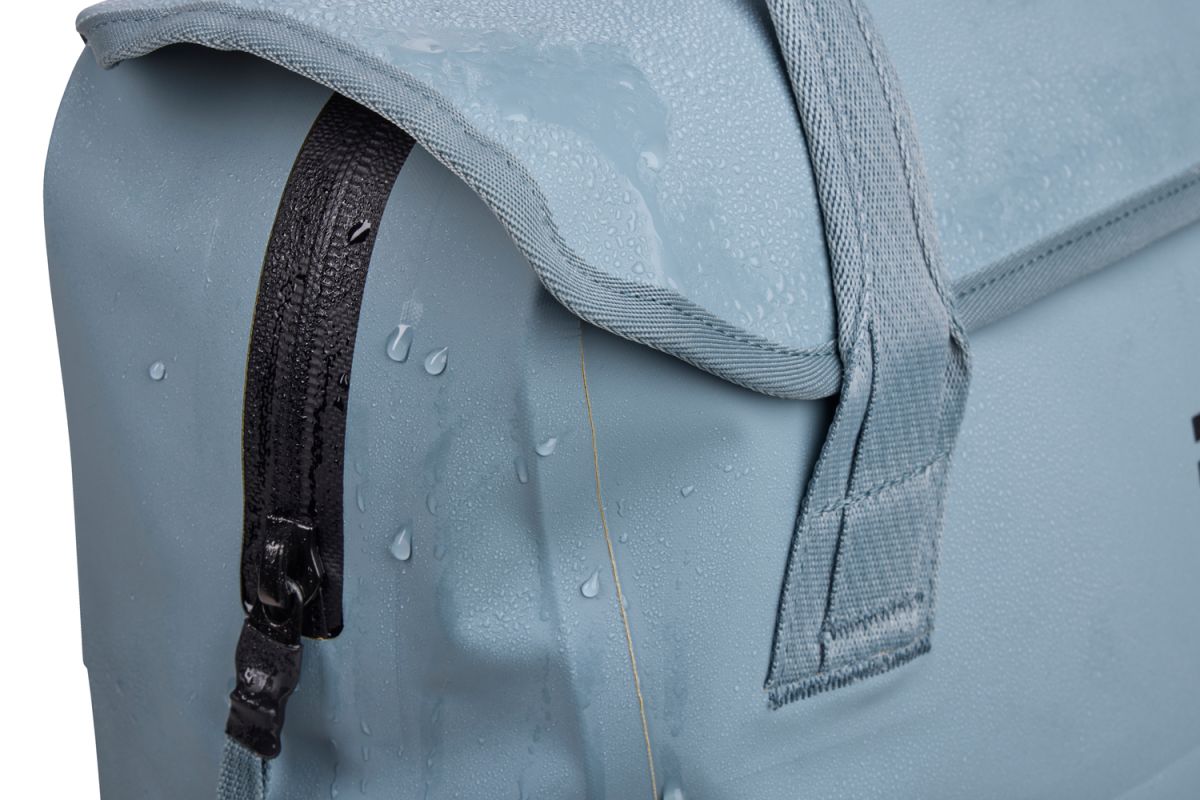 Vďaka vodotesnej konštrukcii s certifikáciou IPX4, zváraným švom, odolným materiálom a utesnenému zipsu spoľahlivo chráni obsah pred dažďom. Polstrovaná priehradka pojme notebook až do veľkosti 16".