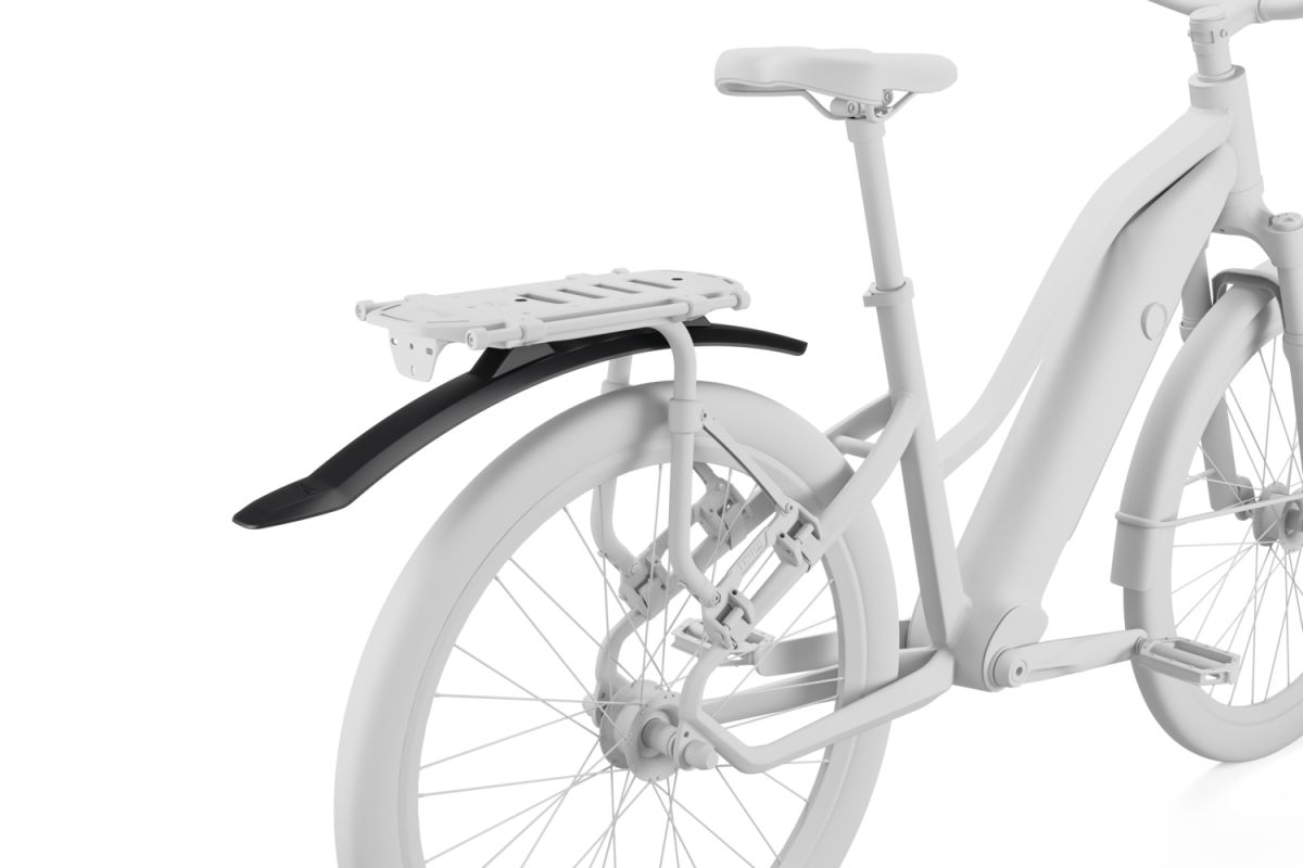 Vďaka precíznemu dizajnu dokonale prilieha k nosiču a kryje zadné koleso, čím minimalizuje postriekanie od kolies. Montáž blatníka je rýchla a jednoduchá, vykonáva sa priamo na nosič pomocou dvoch skrutiek. K dispozícii sú dve polohy pre optimálne nastavenie nad zadným kolesom podľa typu kolesa a veľkosti tašiek.