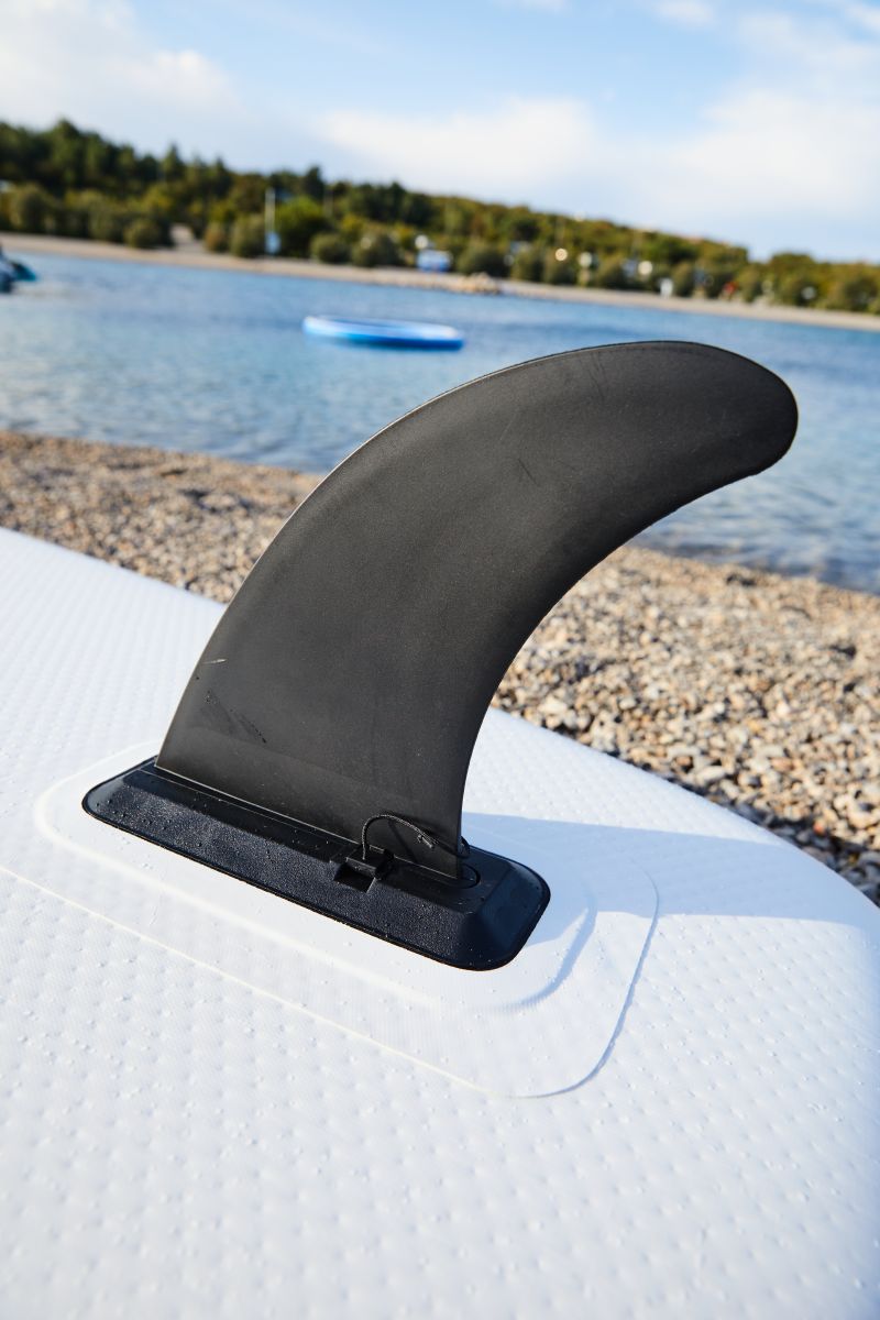 O stabilitu a dobré vedenie smeru sa stará jedna stredová odnímateľná plutva, ktorá zaisťuje jednoduché ovládanie a prirodzený jazdný prejav. Vďaka kompletnému príslušenstvu v balení môžete vyraziť na vodu ihneď po rozbalení – nafúknutie pomocou ručnej pumpy zaberie len niekoľko minút a po jazde paddleboard ľahko zbalíte do transportného batohu.
