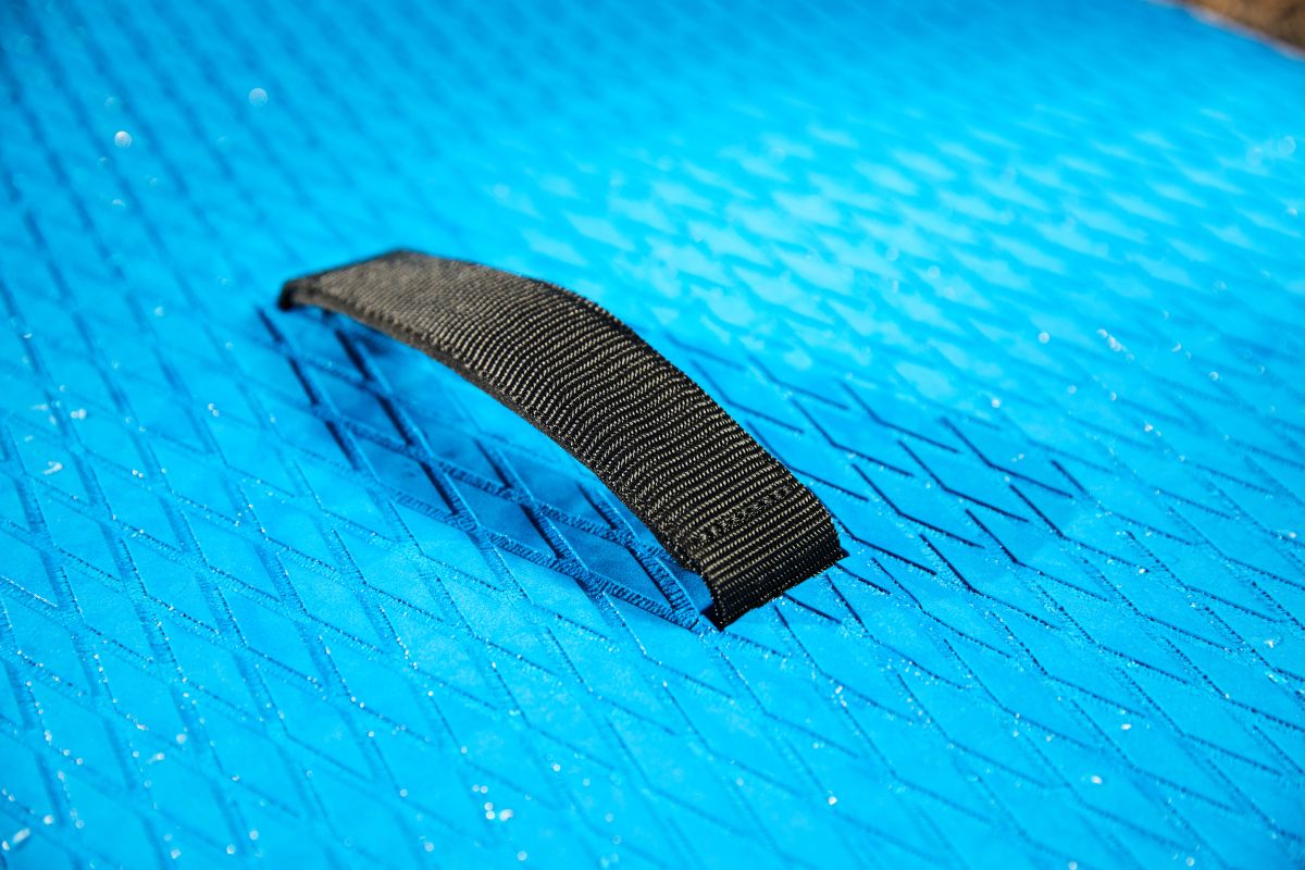 Paddleboard je vyrobený z odolnej Drop-Stitch konštrukcie, ktorá zaisťuje potrebnú tuhosť, pevnosť a dlhú životnosť aj pri pravidelnom používaní. Protišmyková EVA podložka na palube zvyšuje komfort a bezpečnosť pri státí a umožňuje pohodlné pádlovanie aj dlhšiu dobu. Praktické madlá uľahčujú prenášanie paddleboardu na brehu aj manipuláciu vo vode, zatiaľ čo elastické bungee lanko na prove slúži na uchytenie osobných vecí alebo menšieho vybavenia.