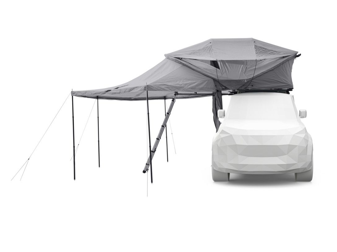 Markíza Thule Approach Awning 2 L premení váš strešný stan Thule Approach na plnohodnotné vonkajšie zázemie chránené pred slnkom i dažďom a výrazne zvýši komfort pri kempovaní. Veľká plocha poskytuje príjemný tieň počas horúcich dní a ochranu pri nepriaznivom počasí, pričom umožňuje neobmedzený pohyb dovnútra a von zo stanu bez obmedzenia prístupu. Markíza sa k stanu pripája rýchlo a bezpečne pomocou zipsového systému a jej stabilitu zaisťujú robustné, výškovo nastaviteľné hliníkové tyče, ktoré zvládnu aj náročnejšie podmienky v teréne.