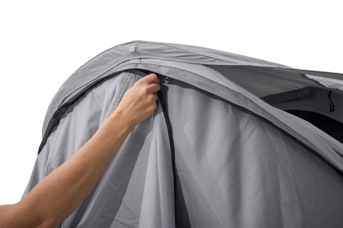 Steny sa ľahko pripájajú k markíze a vďaka modulárnej konštrukcii umožňujú vytvoriť plne uzavretú miestnosť alebo len čiastočné krytie podľa aktuálnych potrieb a usporiadania táboriska. Celý systém je navrhnutý tak, aby dokonale ladil s markízou Thule Approach 2 a zachoval jednotný, čistý vzhľad.