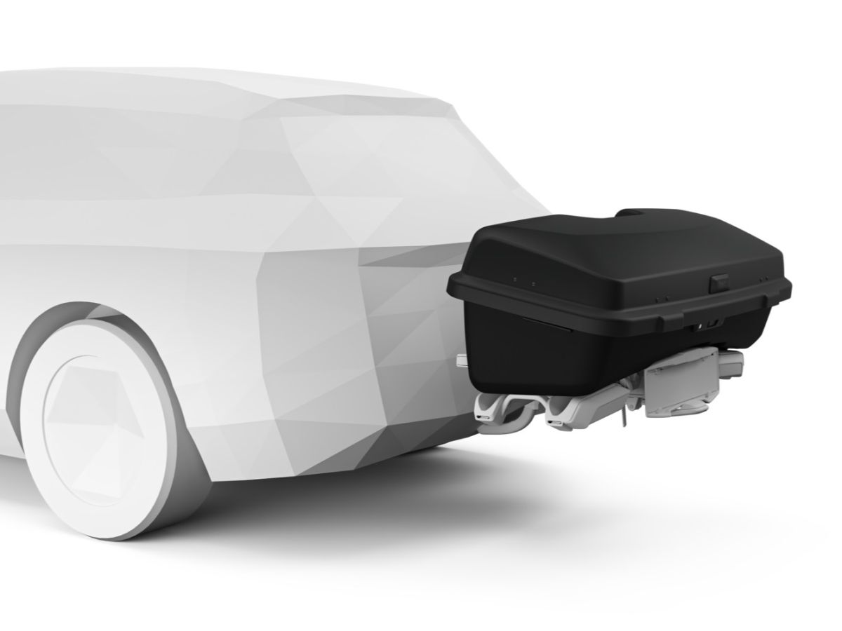 Box je možné uchytiť na nosiče kolies: Thule EasyFold XT (2 alebo 3 kolesá), Thule Epos (2 alebo 3 kolesá), Thule EasyFold 3 (2 alebo 3 kolesá)