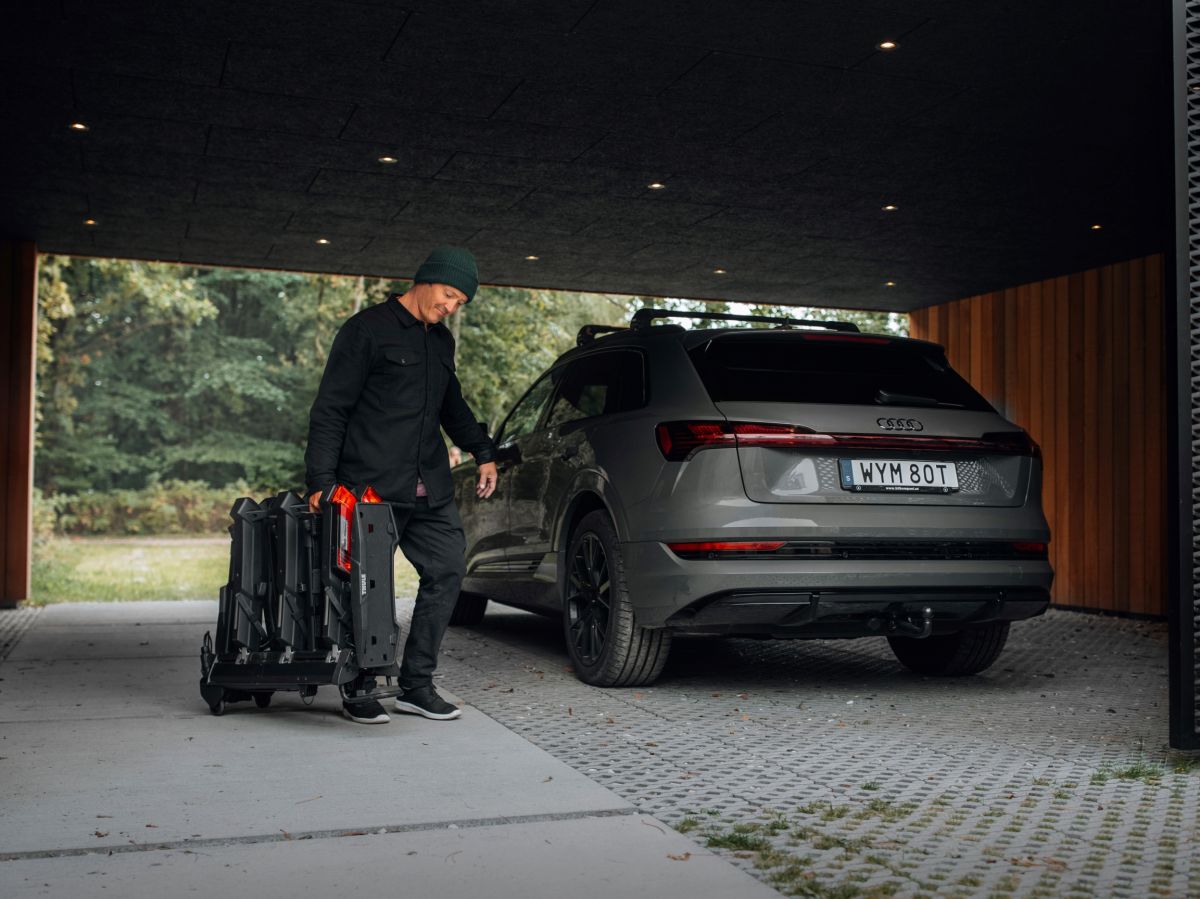Nosič je plne skladací a má ergonomické spracovanie, takže manipulácia a skladovanie sú veľmi jednoduché. Pre pohodlné skladovanie a prevoz nosiča v kufri, odporúčame obal na Thule Epos - zakúpite TU.