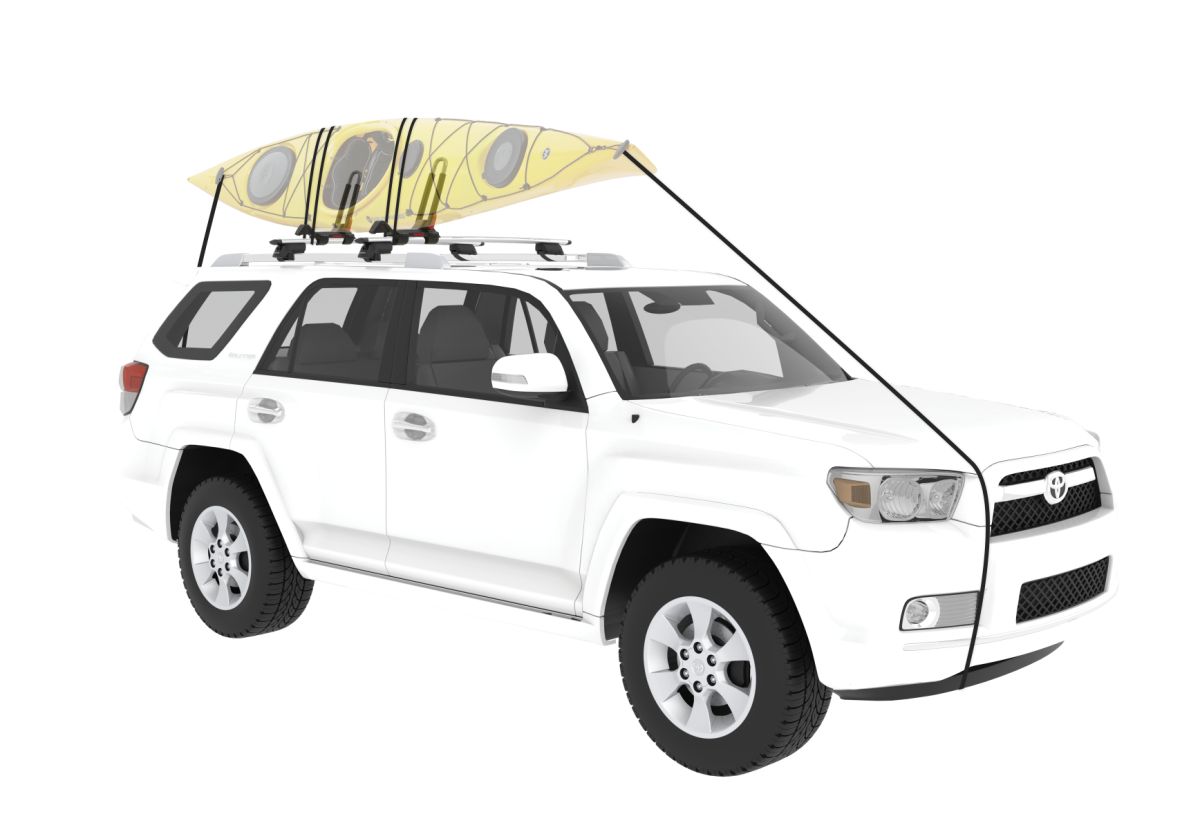 Prémiový nosič kayakov YakimaJayLow, spoľahlivo k nemu upevníte až 2 lode. 1 loď do hmotnosti 36kg v polohe J-kolísky, alebo 2 lode, celková hmotnosť 50kg, vo zvislej polohe.
