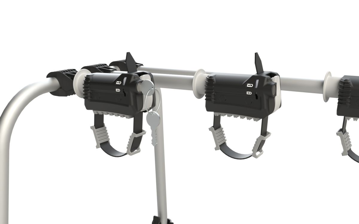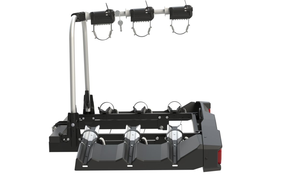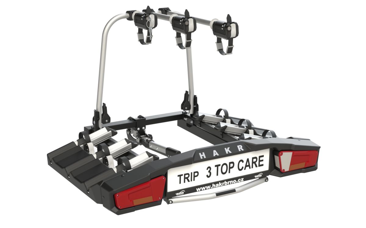 HAKR Trip 3 TOP CARE ponúka vďaka inovovaným úchytom mimoriadne šetrné, ale zároveň pevné uchytenie rámu. Pomocou špeciálne vyvinutých gumových prvkov chráni lak aj konštrukciu bicykla pred poškodením. Úchyty sú plne uzamykateľné a odnímateľné, čo uľahčuje manipuláciu aj samotné nasadzovanie kolies. Vďaka širokému rozsahu uchytenia sa prispôsobí všetkým typom rámov vrátane elektrobicyklov.