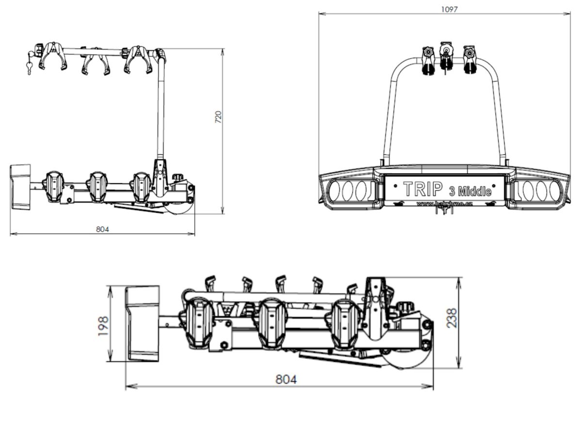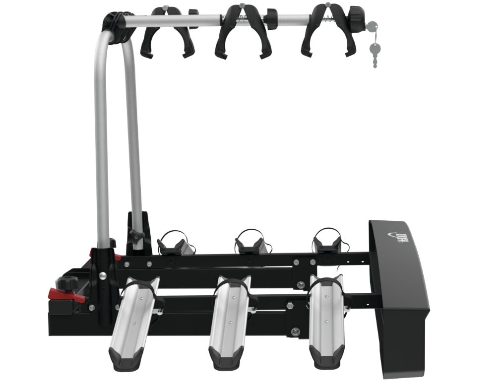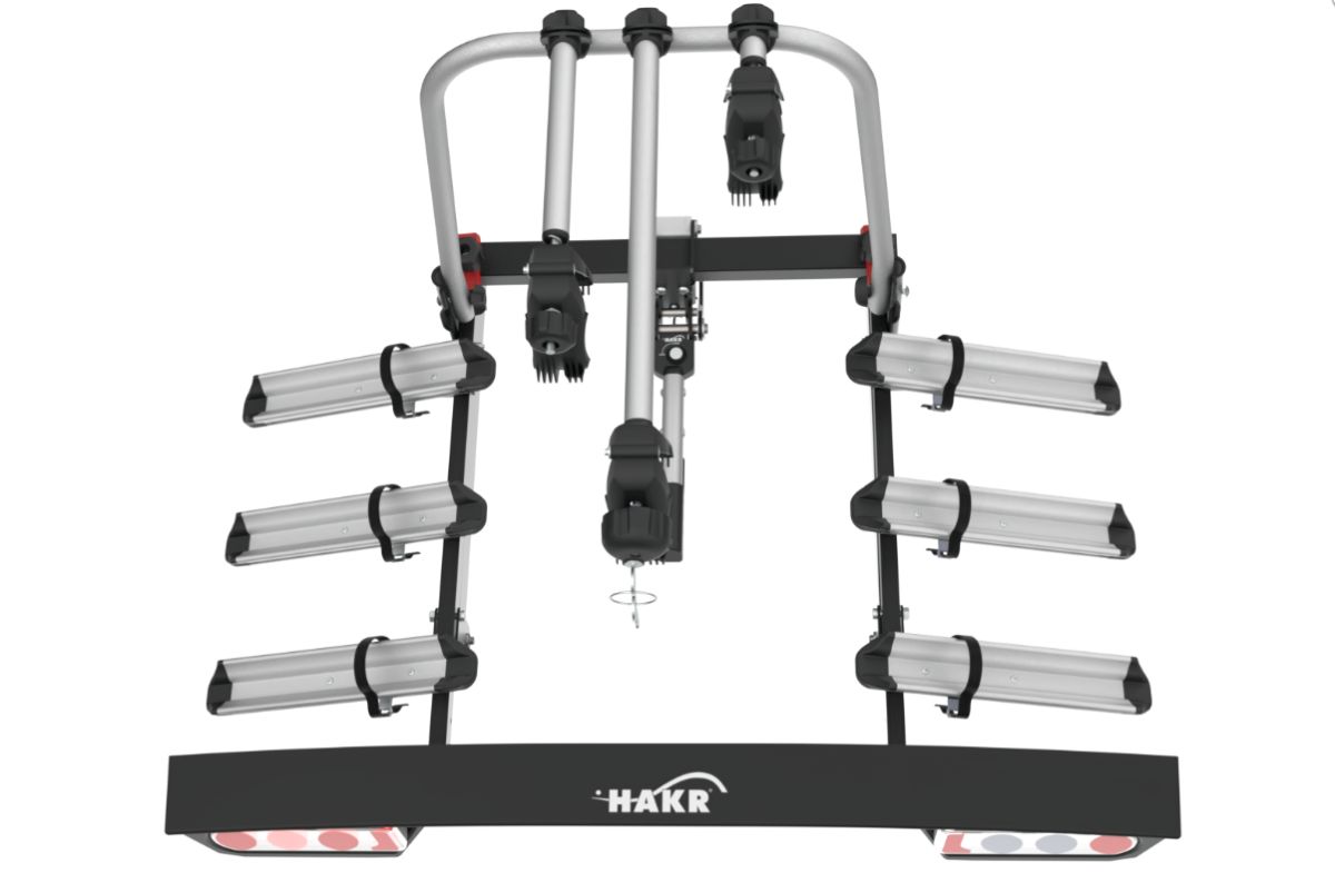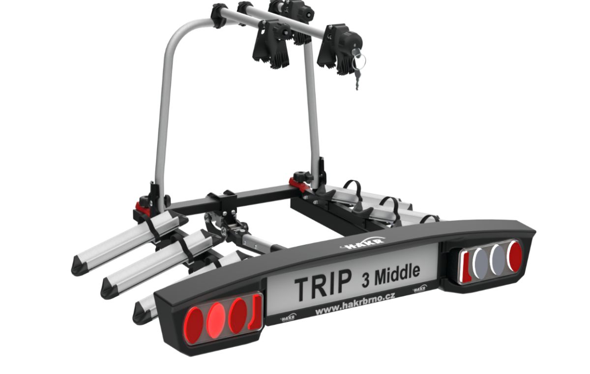 Nosič na ťažné zariadenie HAKR TRIP Middle je praktické a spoľahlivé riešenie pre bezpečnú prepravu až troch bicyklov. Modernizovaná konštrukcia je vybavená novou svetelnou rampou, ktorá zaisťuje dobrú viditeľnosť a spĺňa aktuálne požiadavky na bezpečnosť prevádzky.