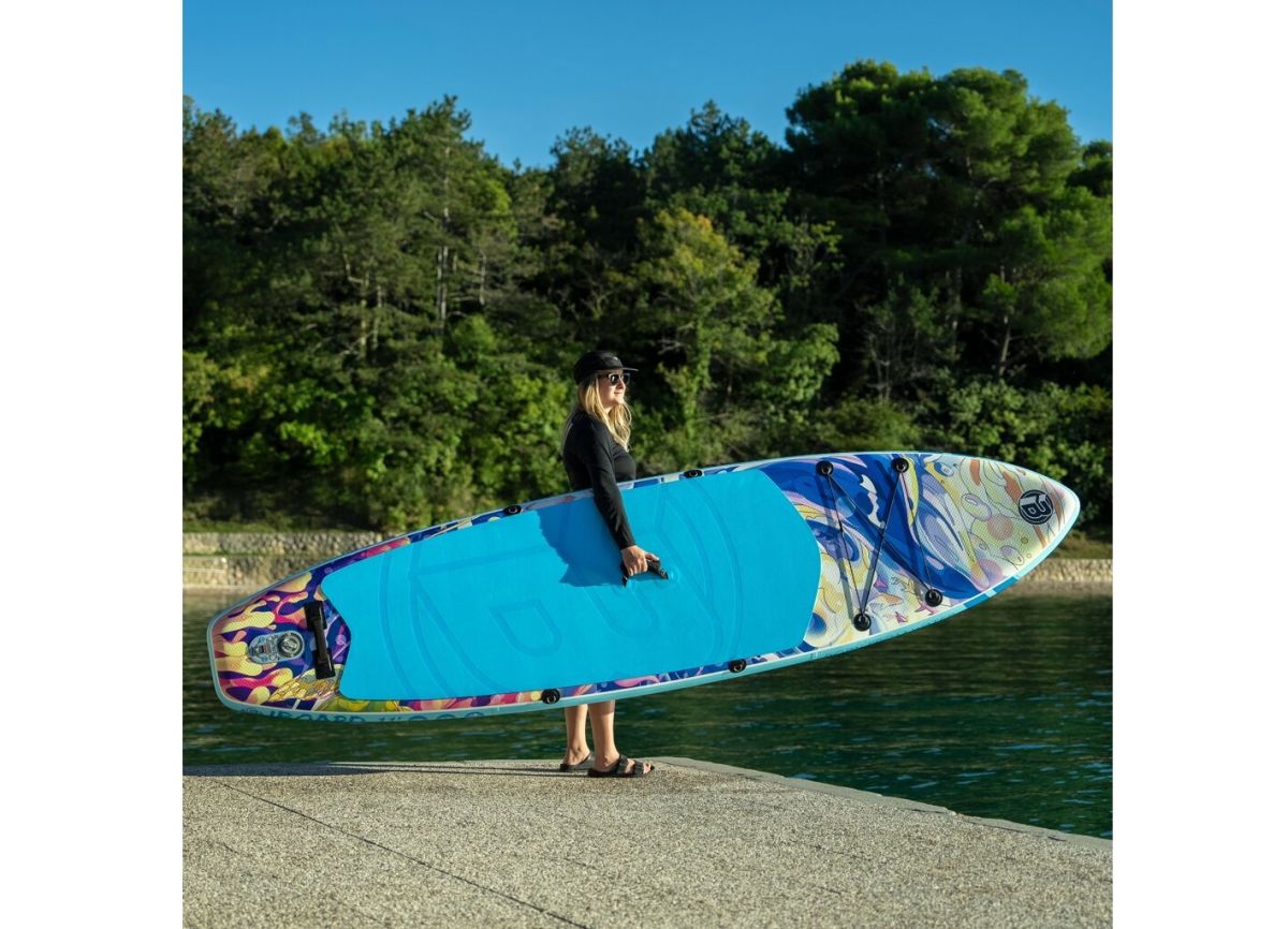 Vďaka rozmerom 335 × 81 cm poskytuje perfektnú rovnováhu medzi stabilitou a manévrovateľnosťou, čo ocenia ako začiatočníci, tak pokročilí jazdci. Dvojvrstvová konštrukcia z odolného PVC s MSL Fusion technológiou zaisťuje vysokú pevnosť, dlhú životnosť a nízku hmotnosť, vďaka čomu je paddleboard nielen spoľahlivý, ale aj ľahko prenosný.