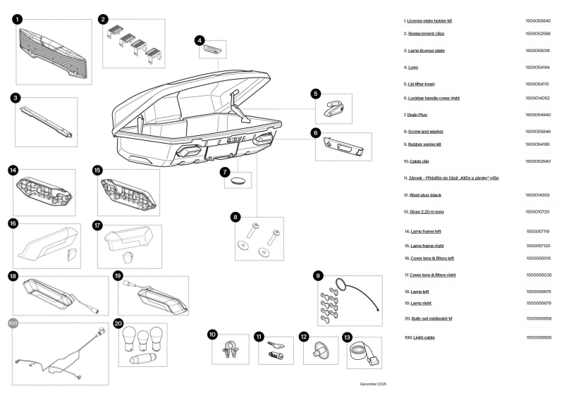 V tejto sekcii nájdete originálne náhradné diely THULE pre výrobok Prepravný Box Thule Arcos na ťažné zariadenie XL.