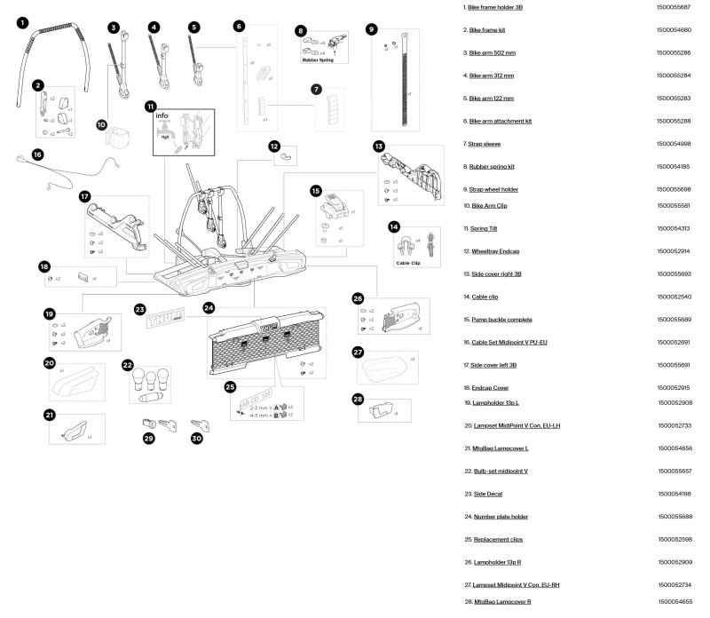 V tejto sekcii nájdete originálne náhradné diely THULE pre výrobok Thule VeloSpace 3 9033 pre 3 kolá.