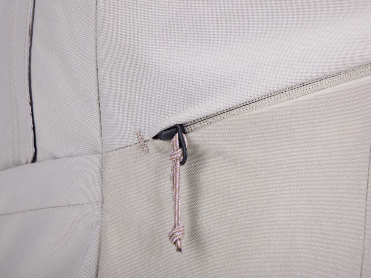 Batoh je vybavený zipsami YKK, ktorých pútka sú farebne ladené s vnútornou výstelkou.