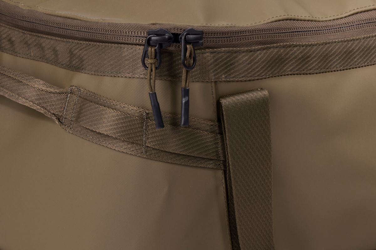 Použitý materiál 900D s vodoodpudivou úpravou bez PFC je vysoko odolný voči opotrebovaniu a zároveň šetrnejší k životnému prostrediu, pričom všetky tkaniny, popruhy aj sieťovina sú vyrobené zo 100% recyklovaných materiálov.