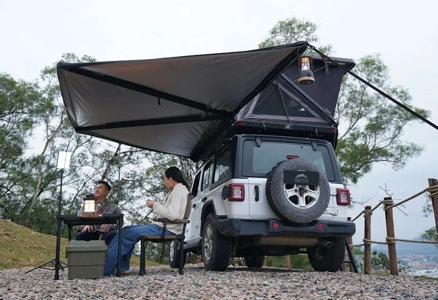 - 180° výsuvná markíza na auto s dizajnom inšpirovaným krídlami netopiera