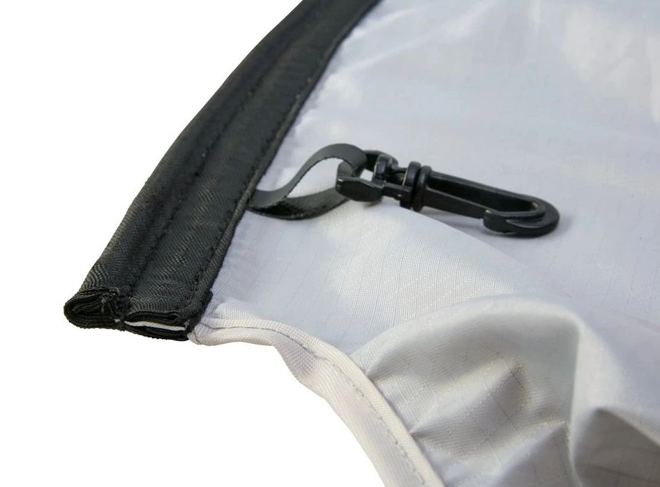 Prístrešok je vybavený integrovanými vnútornými aj vonkajšími úchytmi, vďaka ktorým je možné súčasne používať ďalšie príslušenstvo SkyRise bez obmedzenia funkčnosti. Na bezpečné upevnenie v silnom vetre slúžia kolíky, ktoré sú súčasťou balenia, rovnako ako praktická transportná taška, ktorá uľahčuje zbalenie a prepravu.