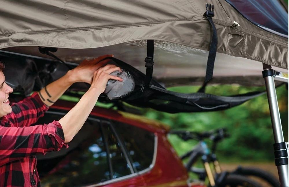 SkyLoft je možné umiestniť vo vnútri stanu cez konštrukciu pomocou pevných pútkov alebo v exteriéri zasunutím do koľajničky SideTrack™, čo zaisťuje flexibilné použitie podľa vašich potrieb. Pokiaľ ju práve nepotrebujete, sieťka sa ľahko zloží do kompaktného vrecka, takže nezaberá miesto a je pripravená na okamžité použitie.