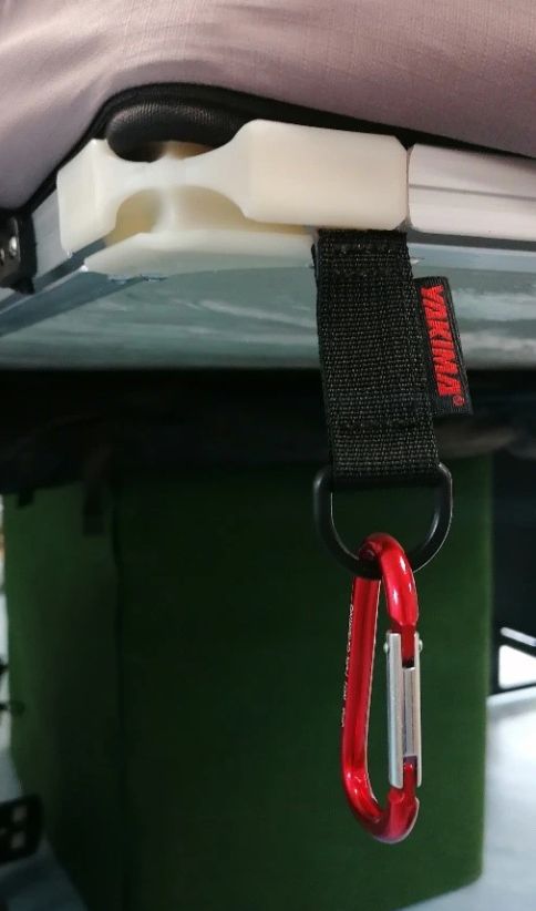 Karabínka sa ľahko zasunie do koľajničky SideTrack™, ktorá obieha po obvode stanu Yakima SkyRise, a môžete ju ľubovoľne posúvať.